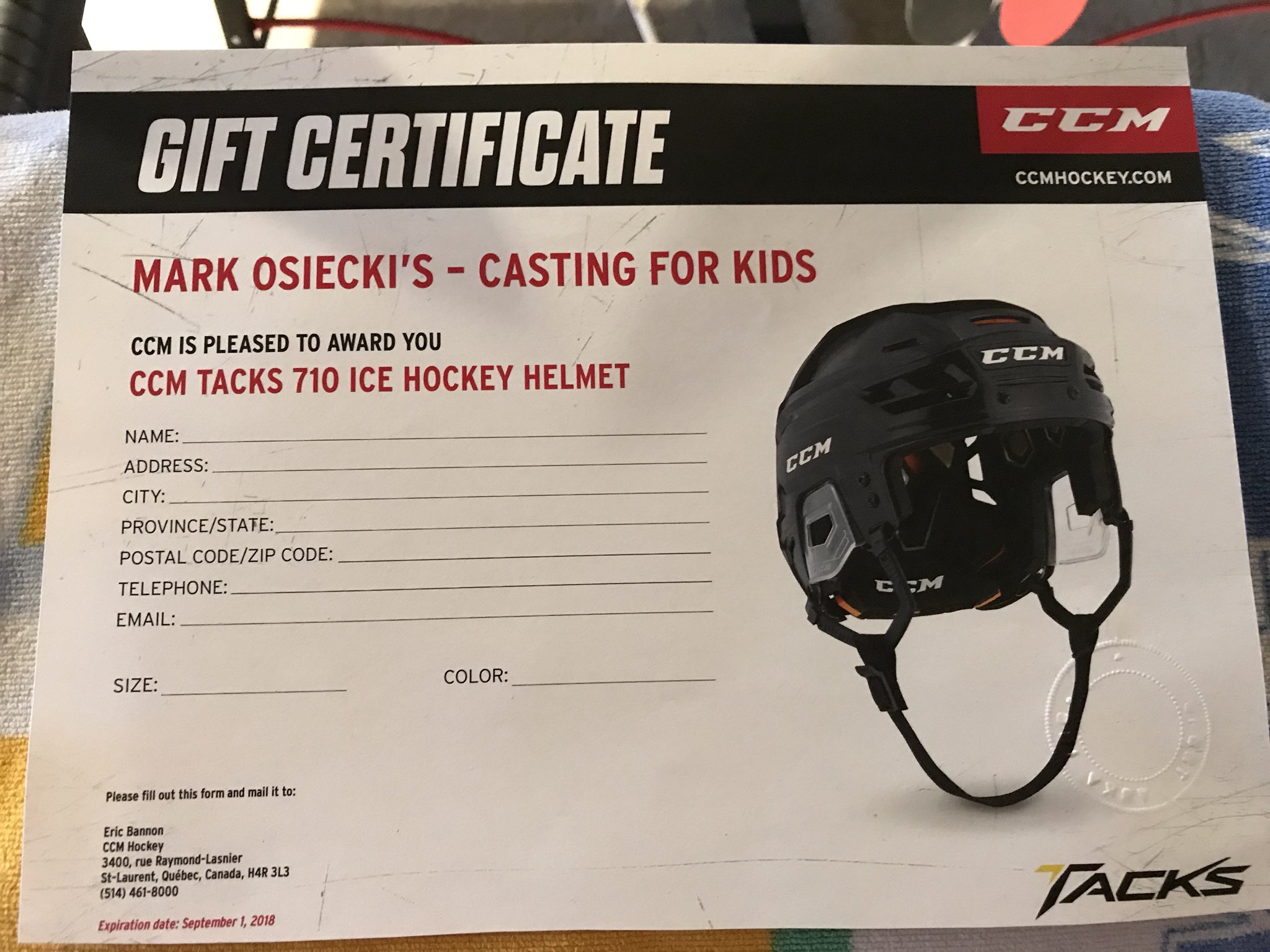 Mark Osiecki On Twitter Thanks To Ccmhockey For Their Generous Donation 2 Sticks Skates Helmet And Gloves What A Great Auction Item Castingforkids Is Going To Be Great Because Of Companies