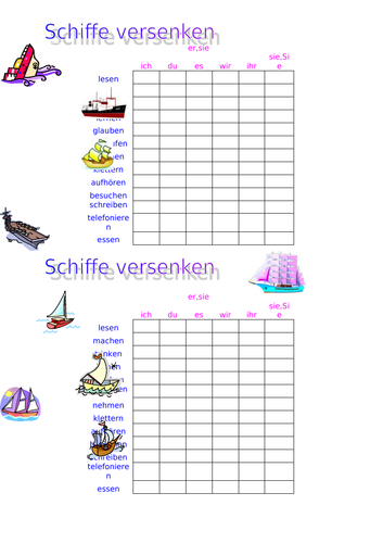 German Stem Changing Verbs Schiffe Versenken Battleship Italian Verbs Battleship Verb